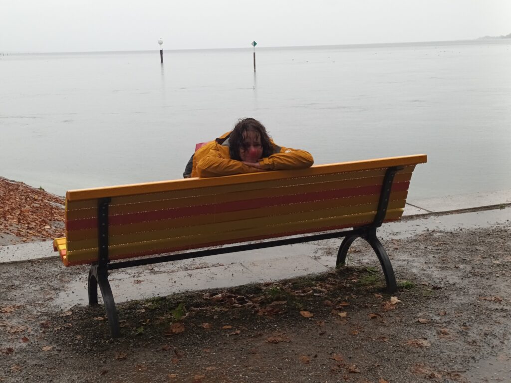 Wir lachen auf der Hafenbank in Neuhaus an der Oste
