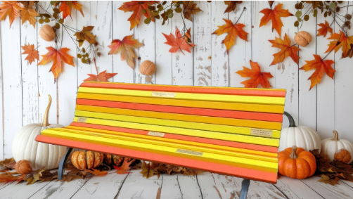 Eine auffällige bunte Bank, die zum Sitzen und Rasten einlädt, versehen mit kleinen Plaketten, die zu leicht umsetzbaren Humoraktionen animieren. Wie z.B. „Lächeln Sie die nächsten drei Personen die Sie auf der Straße treffen herzlich an“, oder „Erzählen Sie der nächsten Person auf dieser Bank einen Witz (mit oder ohne Pointe)“. Die anderen Anleitungen auf den Plaketten müssen Sie selbst entdecken….